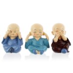Handcrafted Set of 3 Baby Monk Decorative Showpiece (Polyresin)