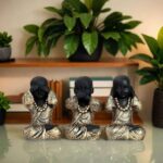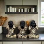 Handcrafted Set of 3 Baby Monk Decorative Showpiece – (Polyresin, Gold, Black)