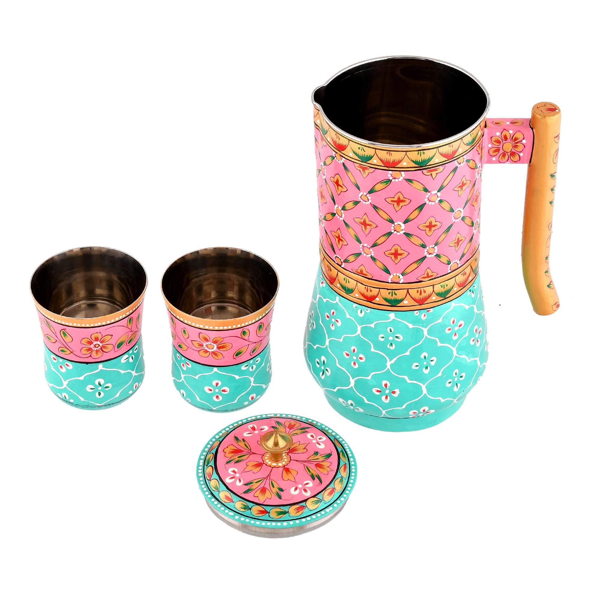 Aluminium Jug Set with 2 Glass Tumblers – 21 cm for kitchen d?cor ,Table Top , And Home Decoration