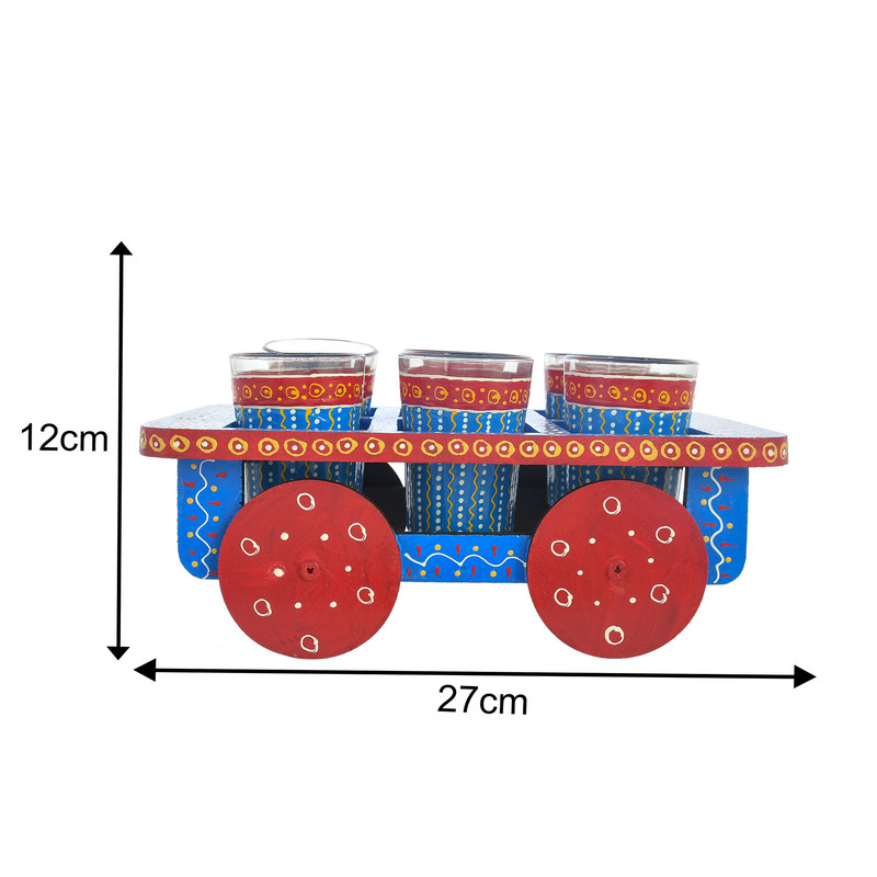 HandPainted Alluminium Tea Kettle with 6 Glasses and Wooden Tray For Home D?cor , Tea Party , Serving