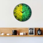 Exquisite Wooden Handmade Wall Clock Green With Yellow And Goldan Printed Acrylic Wall Clock for Home & Office Decorative Big Size Clock (16 Inch)