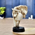 Horse head showpiece will be an enchanting home dcor object. The hand-carved horse head Polyresin showpiece involves an exquisite design and chiseled texture to give a graceful look to your home. The showpiece for home decor is out of the ordinary and unique showpiece for home decor. The stunning horse head figurine is an ideal showpiece for the living room, bedroom, drawing room, desktop, TV cabinet, and so on. The polyresin showpiece is a great gift for weddings, anniversaries, housewarmings, birthdays, Christmas, festivals, and others. Note : The Horse Head showpiece can be matched with other decorative objects from our collection to have an abstract decor setup.