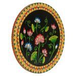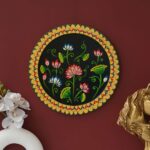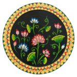 This hand-painted pichwai features a stunning floral design on a black background. The intricate details and vibrant colors make this piece a true work of art. Perfect for adding a touch of Indian culture to your home or as a unique gift.
