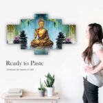 Buddha Set of Five 3D Framed Paintings for Wall Decoration – Ideal for Home, Living Room, and Bedroom (75 x 43 CM)