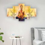 Buddha Set of Five 3D Framed Paintings for Wall Decoration – Ideal for Home, Living Room, and Bedroom (125 x 60 CM)