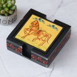 Handcrafted Wooden Horse Hand-Painted Tea Coaster Set: Artistic Table Protection