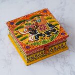 Store your precious jewels in style with our exquisite handcrafted wooden jewellery box. Crafted with care and attention to detail, this box is perfect for organizing and safeguarding your favourite pieces. The timeless design adds a touch of elegance to any dresser or vanity, while the plush velvet interior ensures your jewellery stays safe from scratches and tangles. With multiple compartments and a secure latch closure, this box is both functional and beautiful. Treat yourself or someone special to this luxurious jewellery storage solution today!