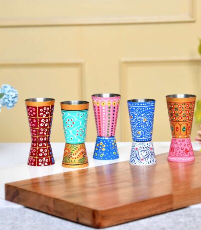 Sleek Aluminium Set of Five Cocktail Glasses - Premium Shatterproof Martini Glassware