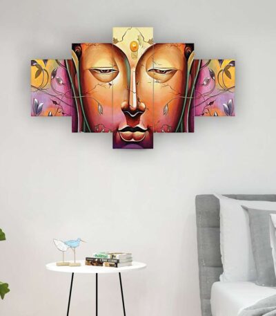 Buddha Set of Five 3D Framed Paintings for Wall Decoration – Ideal for Home, Living Room, and Bedroom (125 x 60 CM)