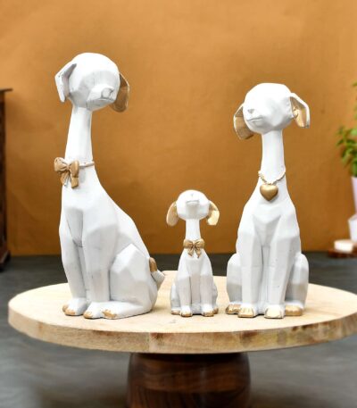 WHITE Golden Set of 3 Cute Dog Statues Animal Figurines Decorative Showpieces for Home Decor in Living Room, Office, Pet Lovers' Spaces - Gift for Dog Enthusiasts on Birthday, Housewarming