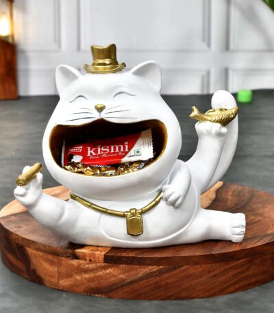 Cat with Hat Statue for Storage Purpose for Home Decor Showpiece Figurine